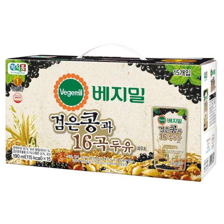 - Sữa đậu nành (nước, đậu nành), đường, nước tinh khiết, bột 16 loại ngũ cốc 1,1% (lúa mạch, gạo lứt, gạo tẻ, ngô, lúa mì nguyên cám, gạo nếp đen, gạo nếp lứt, gạo ngọt, ngô lúa mạch, kiều mạch, cao lương, đậu adzuki, kê nếp, ý dĩ, kê, đậu xanh), fructose syrup ngô, bột mè đen, muối, chiết xuất đậu đen 0,1%, chất nhũ hóa, hương liệu nhân tạo,...