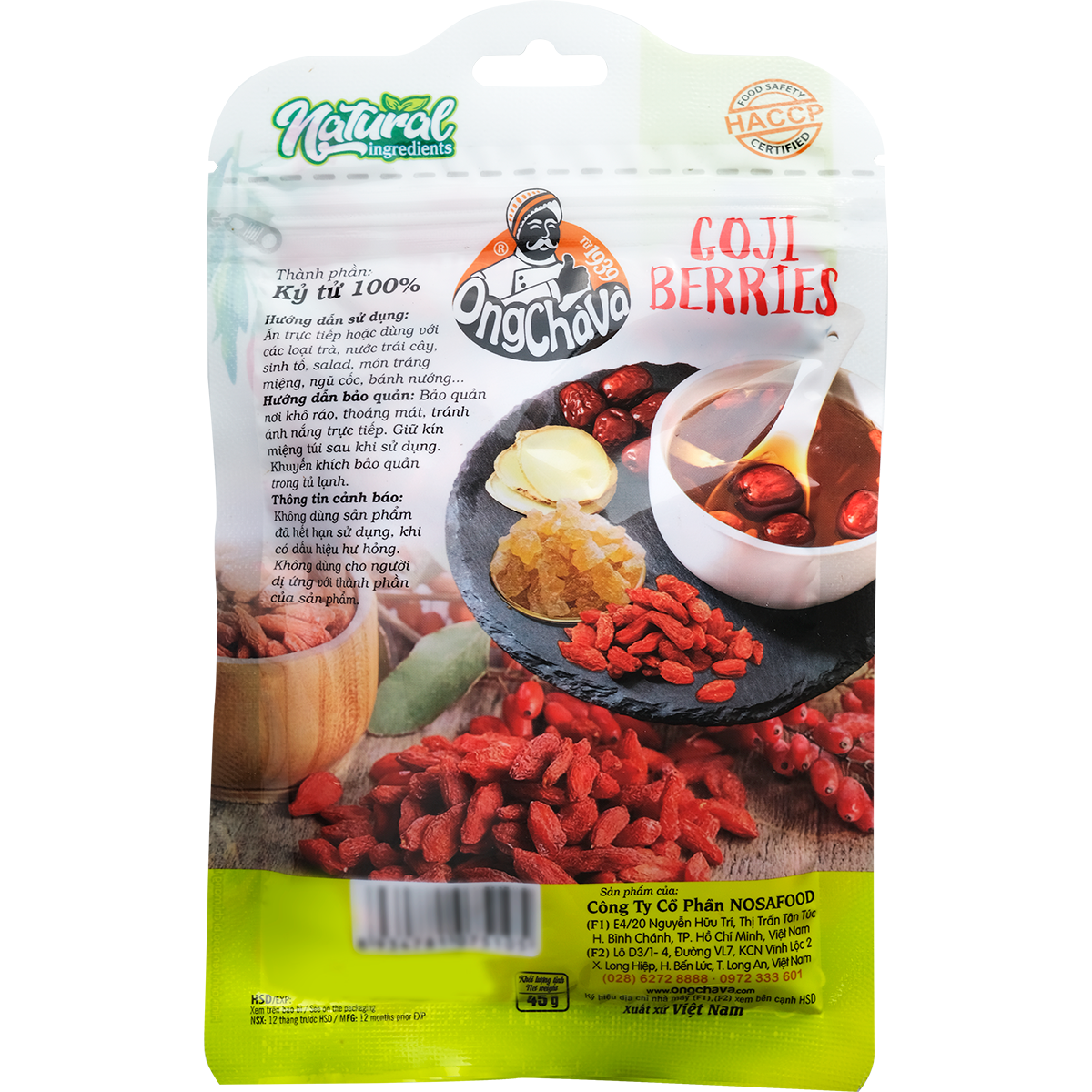 - 100% kỷ tử (Goji berries) – không phụ gia, không chất bảo quản